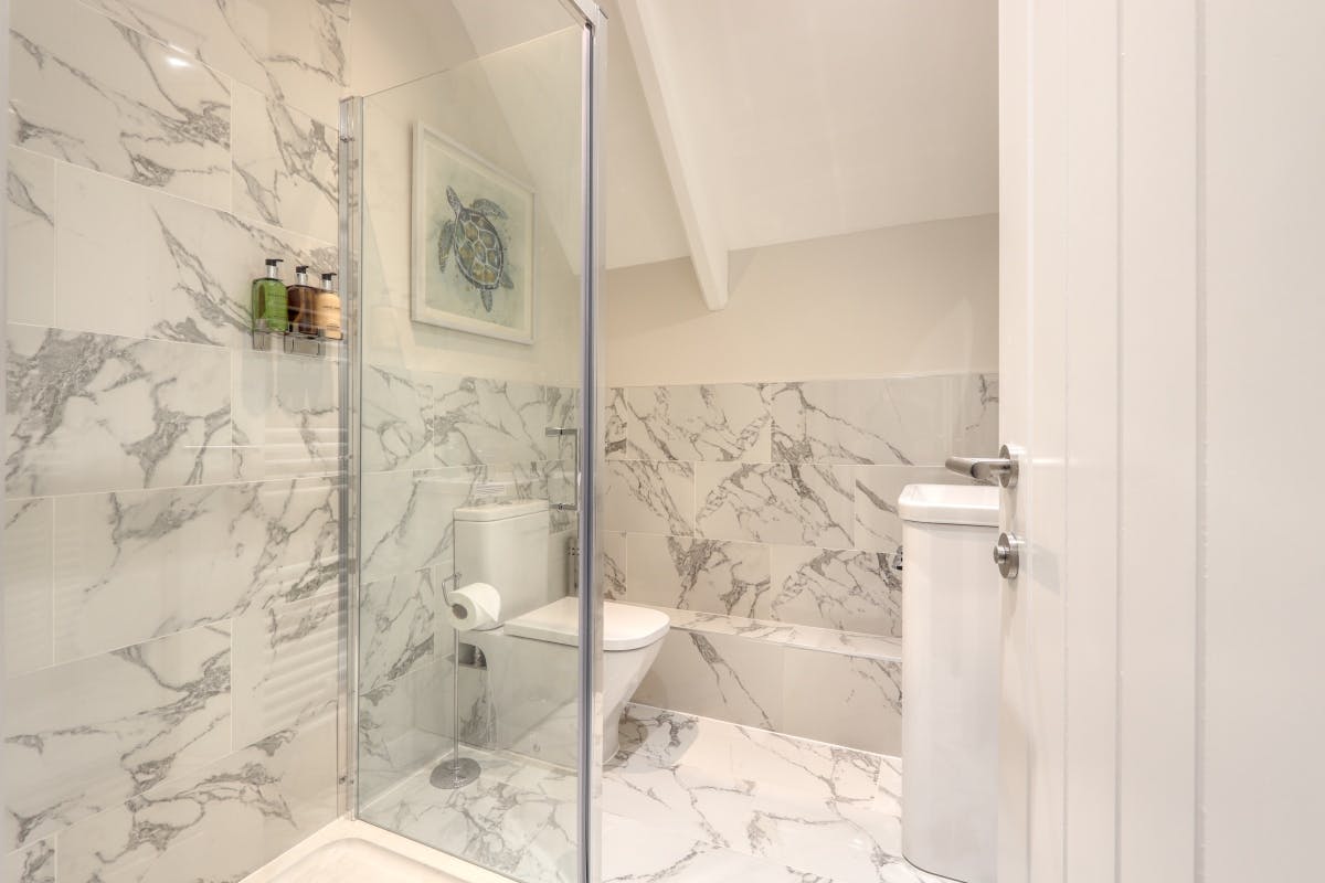 Bathroom with shower, washbasin and, wc