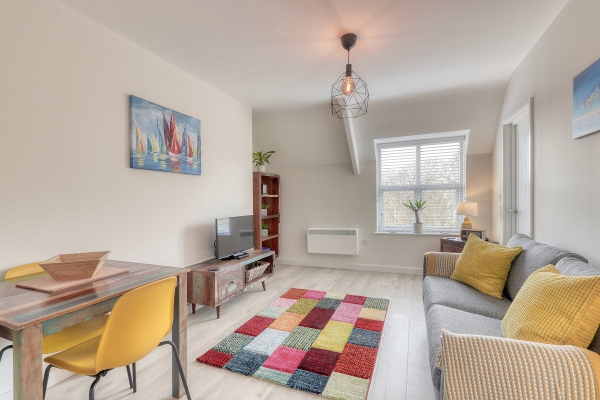 Sitting / Dining Room with comfortable seating, Smart TV with Sky channels, DVD player and dining table with two chairs